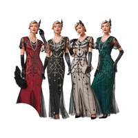 Europese en Amerikaanse retro 1920V-kraag, dubbellaags kwastje, A-lijn, diamanten pailletten, kralenversierde jurk, Gatsby-cocktailbal
