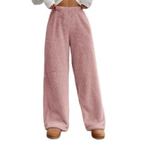 Winterwarme broek Effen mode Pluche casual broek Normale pasvorm Comfortabele warme vintage damesbroek