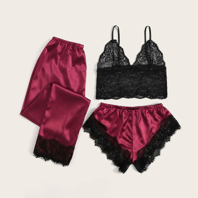Coldker Zomer Satijn 3 Stuk Shorts Pyjama Voor Vrouwen